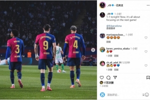 莱万在社交媒体上晒出背影照片,配文:“今晚1-1战平!现在要专注于备战下一场比赛!”